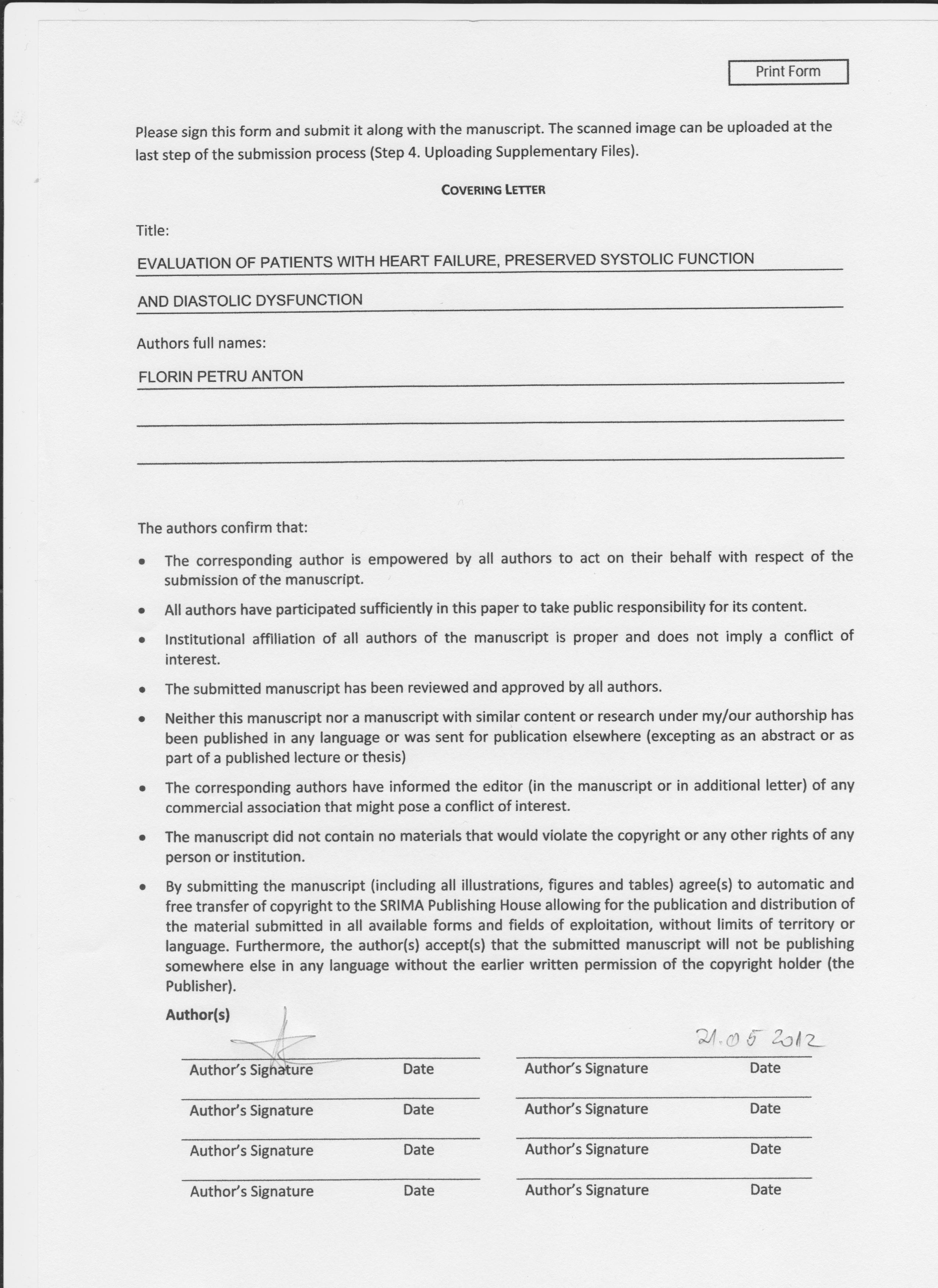 Aim: Assessment of the occurrence, severity and progress of the diastolic dysfunction in patients with clinically manifest heart failure with preserved systolic function, by analyzing the ultrasound parameters that define the diastolic ventricular function, recorded dynamically. Material and Methods: The study involved 200 patients suffering from clinically manifest heart failure, admitted in Cardiology Department of Medical no 1, Cluj-Napoca; an echocardiographic study of the systolic and diastolic function was performed, by the same person, for each of them. The echocardiographic study was carried out dynamically, at first within 3 days of the first examination, then, after 9 months. In the present study we selected patients with an ejection fraction> = 50% and diastolic dysfunction. Results: Of the 200 patients initially evaluated, 43 patients were selected based on the inclusion criteria for diastolic dysfunction. The E '/ A' ratios in the lateral regions of the mitral annulus showed a statistically significant improvement when dynamically assessed (0.71 versus 0, 6, p = 0.016). Also, E / E' ratio in the lateral portion of the mitral annulus significantly improved (6.15 vs. 5.44, p = 0.016) and MPI dynamical assessment shows a statistically significant improvement in this parameter (0.52 vs. 0.46 p = 0.014). Conclusions: Diastolic function assessment should be an integral part of the cardiac function assessment due to the increased prevalence of the patients with HF and preserved systolic function. Our study showed that the most reliable parameters used to assess the diastolic dysfunction in patients with preserved systolic function are the following: the E '/ A' ratio at the level of the septum, the E / E' ratio at the level of the lateral wall, as well as the MPI estimate.Downloads