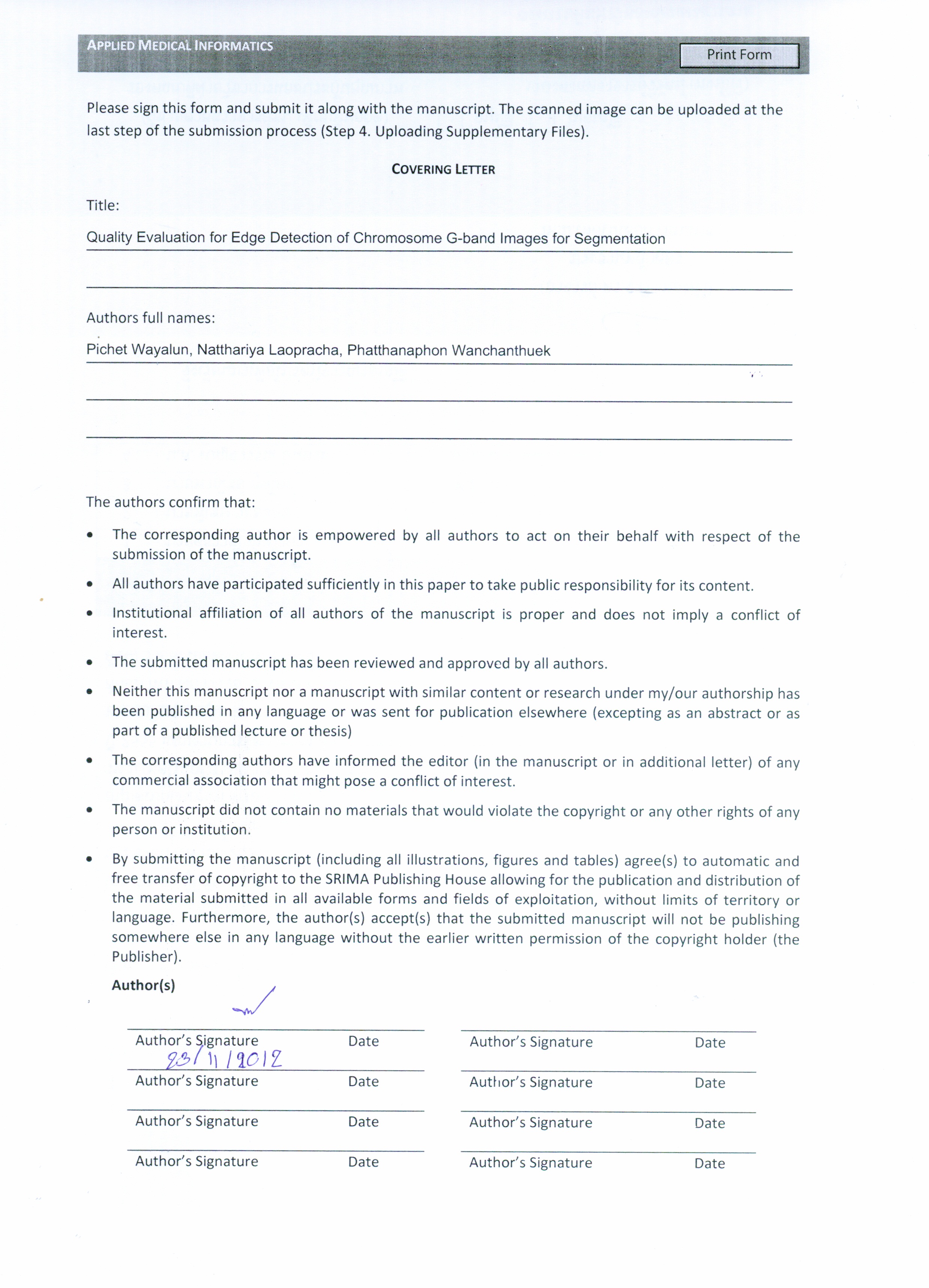 Edge Detection, Chromosome, Chromosome Analysis, KaryotypeAbstract
