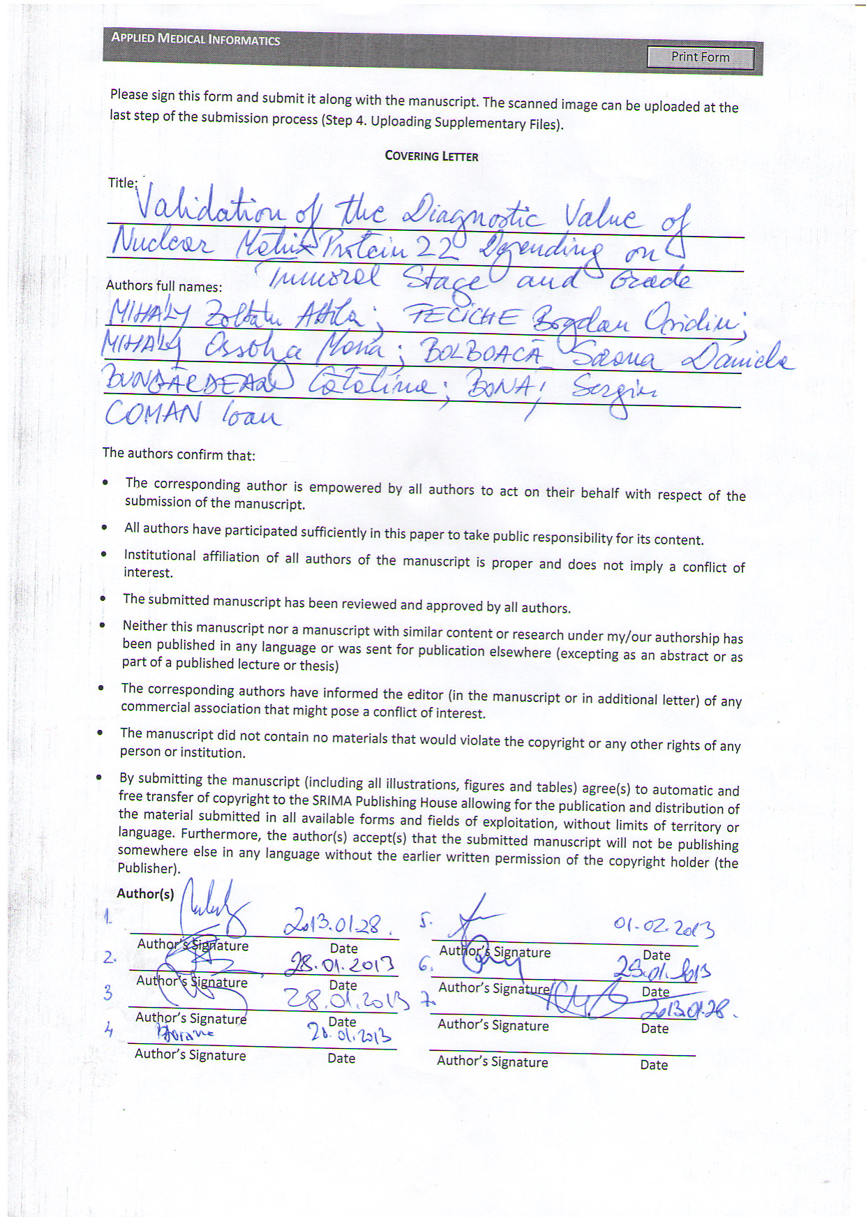 MIHÁLY ZA, FECICHE BO, MIHÁLY OM, BOLBOACĂ SD, BUNGĂRDEAN C, BONAŢ S, COMAN I. Validation of the Diagnostic Value of Nuclear Matrix Protein 22 Depending on Tumoral Stage and Grade. Appl Med Inform [Internet]. 2013 Feb. 25 [cited 2026 Jan. 9];32(1):61-8. Available from: https://ami.info.umfcluj.ro/index.php/AMI/article/view/411