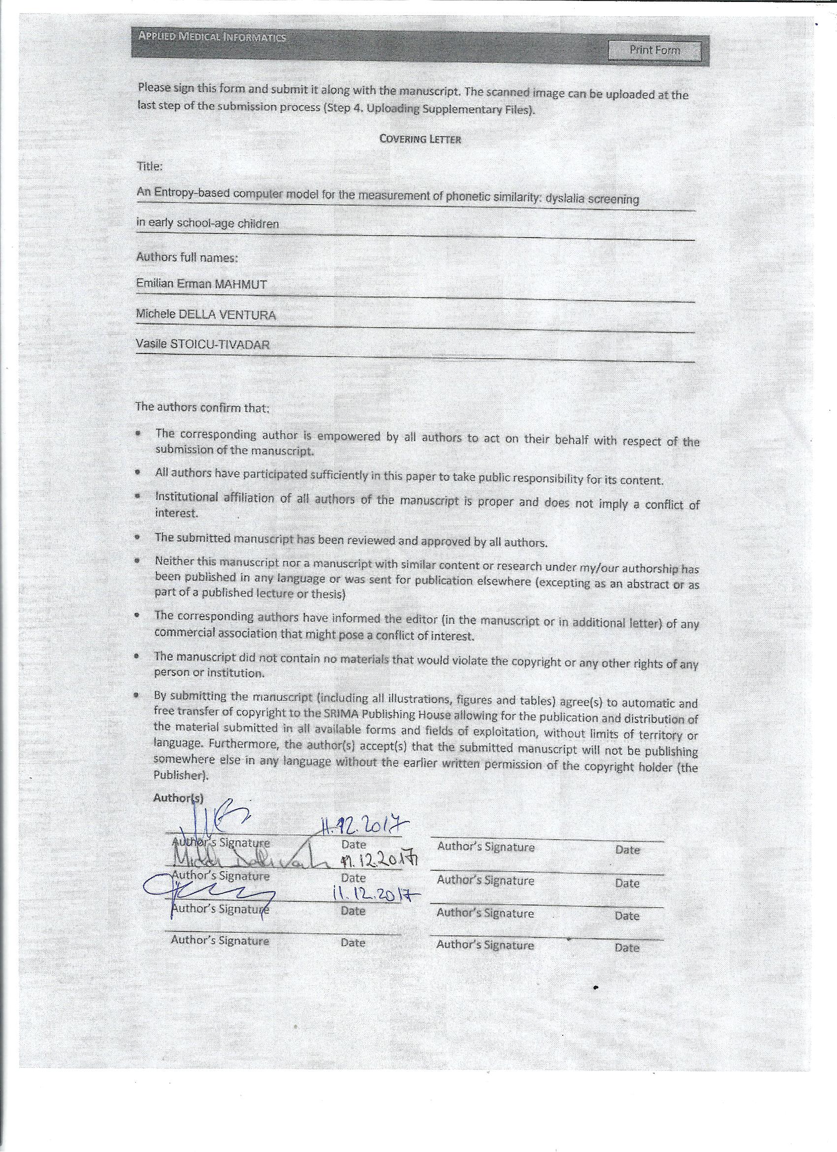 MAHMUT EE, DELLA VENTURA M, STOICU-TIVADAR V. An Entropy-Based Computer Model for the Measurement of Phonetic Similarity: Dyslalia Screening in Early School-Age Children. Appl Med Inform [Internet]. 2018 Jun. 30 [cited 2026 Jan. 10];40(1-2):15-23. Available from: https://ami.info.umfcluj.ro/index.php/AMI/article/view/625